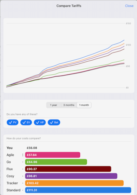 | Cost from the grid | £20.57 (Agile) | £88.55 (Standard) | |
